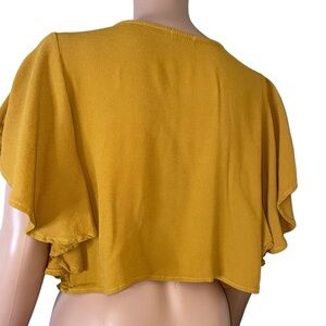 Tobi brand blouse mustard yellow embroidered cropped flowy sleeve flutter SZ SM