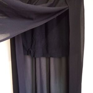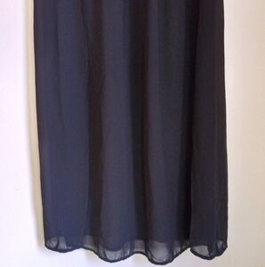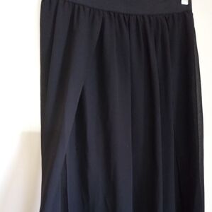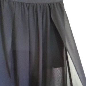 Tobi double spliced black mesh overlay maxi skirt in women's size small. This skirt has a thick elastic band and two mesh panels of fabric that overlap in the front. It is lined with a mini skirt made from a rayon spandex blend and is soft and stretchy and covers your unmentionables leaving a silhouette of your beautiful legs peeking out under the sheer mesh fabric. Great statement piece to add to your wardrobe! Great pre-owned condition with no flaws noted.