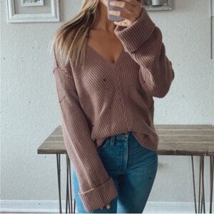 Tobi Cute v-neck sweater in a gorgeous mauve color. Super cute open neck line that can be worn off the shoulder!