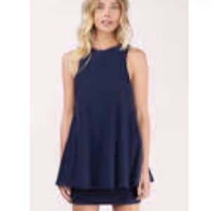 Tobi MAKING MOVES RIBBED SHIFT DRESS XS / NAVY