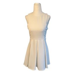 Tobi Pleated Fit & Flare Mini Dress Ivory Cream Halter Sleeveless Sz S