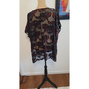 Beautiful sheer Summery woman's top in a size small. No rips stains or tears detected throughout the garment, see photos for measurements, all measurements taken while laying flat.