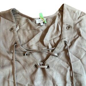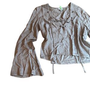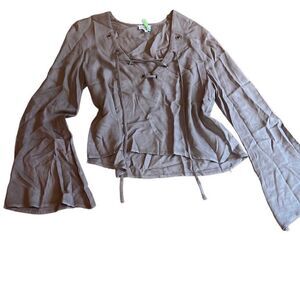 Tobi | womens lace up v neck bell sleeve top. Size small. Color is a dark green. Recently dry cleaned. Excellent condition.