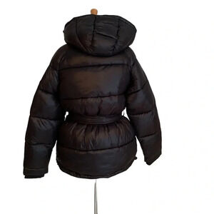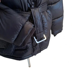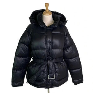 Toboggan Canada Mia Puffer Belted Coat with Removable Hood Black Size XL NWT