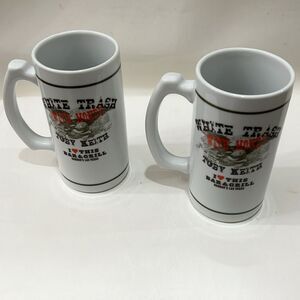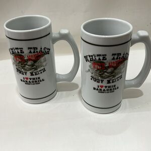 Toby Keith 12 Oz Mugs White Trash With Money Harrahs Las Vegas Set 2 White Black