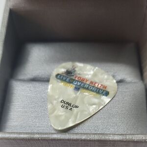 Unique guitar pick from Toby Keith's Live Overdrive tour. Made by Dunlop. Perfect for collectors and musicians.