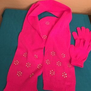 Authentic Toby & Me Beanie, Scarf, and Gloves Set. Girls. OS. Bright Pink. Clear Glass Flowers on the Front of the Hat. Also on the Bottoms of the Long Matching Scarf. Scarf is about 49 Inches Long. Ribbing at the Bottoms of all pieces. All 100% Acrylic. Brand New. Excellent Condition. No Trades. Sold Only as a Set. See other Toby & Me Listings in this Closet. 👍🏽
