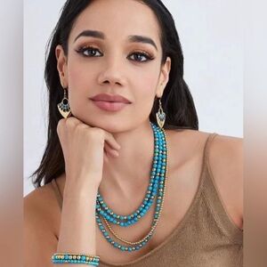 Tocara Pana Turquoise and Gold Beaded Necklace - New