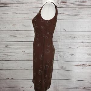 Tocca Bergdorf Goodman -Women's Brown Silk Embroidered Dress Size 2. Shell 100%Silk. Lining 100%Acetate. Approx. measurements pit to pit 14 in. Waist 24 in. Dress length 37 in. Does have discoloration inner lining and light watermark barely noticeable. See Pics. Pre-owned in good condition. no holes.