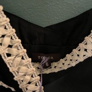 Chic black silk dress by Tocca. Black with cream detailing on straps and body. Perfect for summer date night occasions. I loved this dress but I was too busty to fit into this dress.