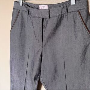 Tocca Dark Gray Wool-Blend Trousers with Brown Trim Style 4296700 Size 12