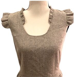 Tocca Tweed Dress Beige Taupe Wool Ruffle Sleeveless Fall Size 10 Fit & Flare