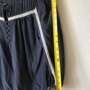 Tocca anthracite black 100% silk blouse 4 with embroidery detail, fabric covered buttons, 3/4 length sleeves