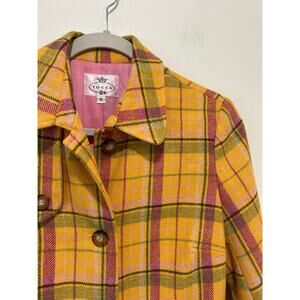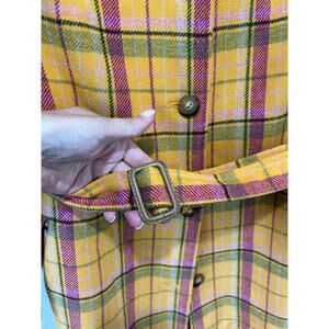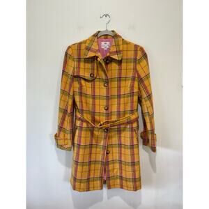 Tocca vintage wool coat womens size 8 yellow plaid button front belt