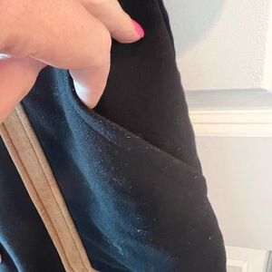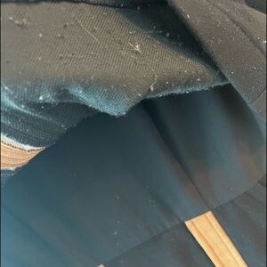 Black and brown stretch jersey with faux suede (88% Polyester, 8% Rayon, 4% Spandex). Hourglass. Short sleeves. Crew neckline. Exposed center back zipper closure. Fully lined.