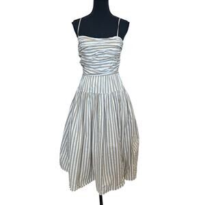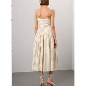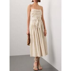 Toccin Brown Stripe Fit and Flare Midi Dress Size 12 Cotton Ruched Designer $475