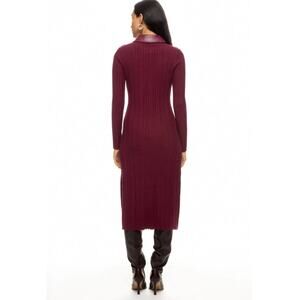 Toccin Burgundy Ribbed Knit Shirt Dress MEDIUM Midi Office Work Designer $525