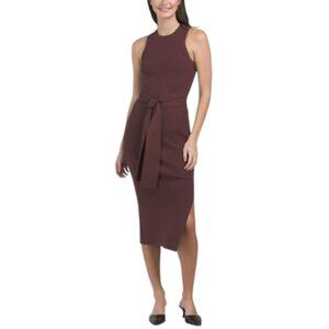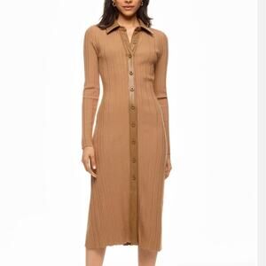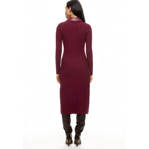 Toccin Burgundy Ribbed Knit Shirt Dress XS Midi Office Work Designer $525