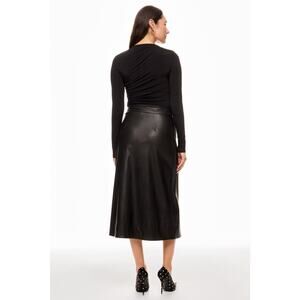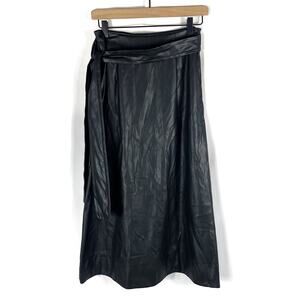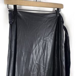 Toccin Faux Leather Wrap Skirt Midi Black Waist Strap Tie Sz S