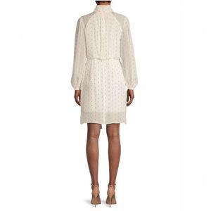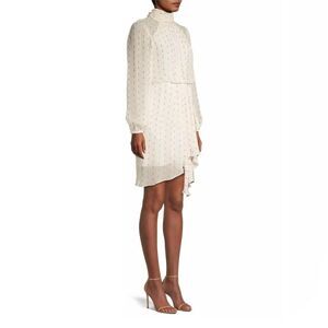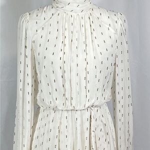 Adorned with a metallic clip-dot pattern, Toccin's Harper minidress showcases a billowy blouson design. This charming piece features a stand collar and long sleeves.