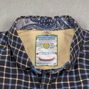 Tocsin Shirt Mens Large Blue Plaid Check Tartan Easy Care Long Sleeve Workwear