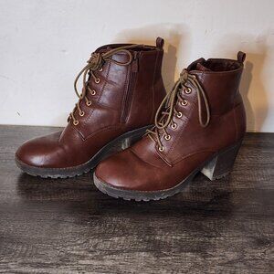 Toda Moda Women's Boots Block Heel Side Zipper Brown Size 10