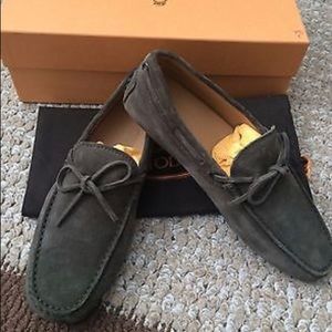 Olive green/gray hue suede authentic Tod's gommino driver shoes in size 7US/6UK. Retails for $445. Comes with box, dustbag, and card