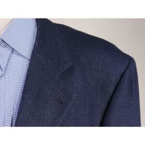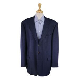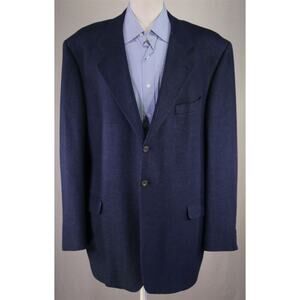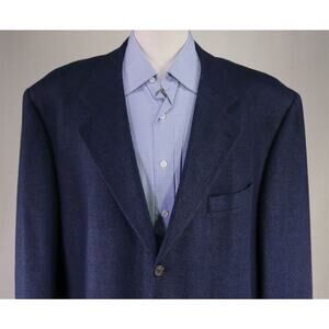 Today's Man Navy Blue Knit Woven Wool-Silk-Linen 3-Btn Sportcoat Blazer 46L