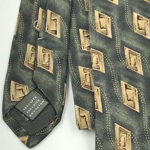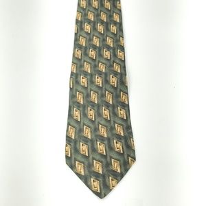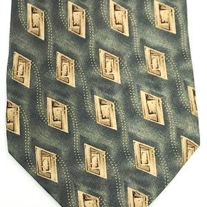Today's Man TM Mens Green Gold Motif Silk Necktie