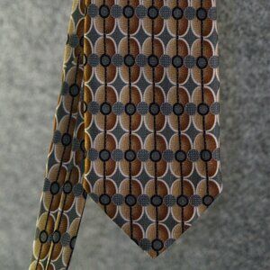 Today’s Man Tie Brown Gray Circle Pattern Made in Italy Silk Blend Menswear