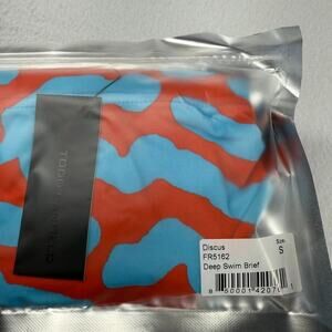 Todd Sanfield Swim Brief Men's Small Blue Abstract Retro Swimsuit Funky Deep NEW