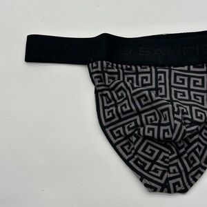 Todd Sanfield Thong Men's Small Gray Black Greek Key Supima Underwear NEW