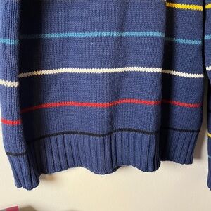 Todd Snyder 100% Wool Blue w Multicolored Horizontal Striped Men's Sweater Sz L