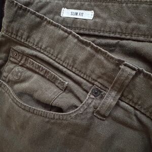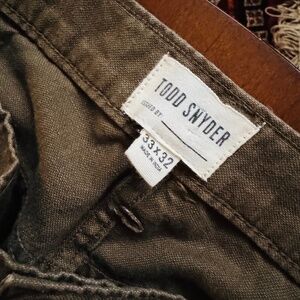Excellent condition TODD SNYDER Cotton Linen Slim 5 pocket chino pants. Olive. 33 x 32. Odor free. Very similar to Todd Snyder's cotton chinos, but light-weight for warmer temps.