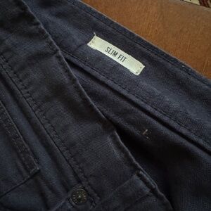 Excellent condition TODD SNYDER Cotton Linen Slim 5 pocket Chino Pants. Dark blue or navy. 33 x 32. Odor free. Very similar to Todd Snyder's cotton chinos, but light-weight for warmer temps.