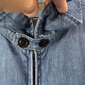 Todd Snyder Easy Going Release Denim Club Jacket is cut like a windbreaker with elastic cuffs and waistband. A two-way zipper front provides versatility in styling while the button closure tab at the neck can lock out the cold when needed. Two lower welt pockets finish off the look, providing extra room