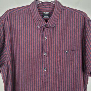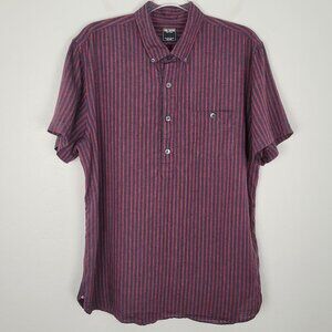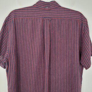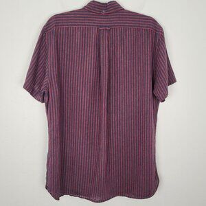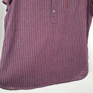 Todd Snyder Linen Popover Shirt Short Sleeve Button Striped Navy Blue Red Size L