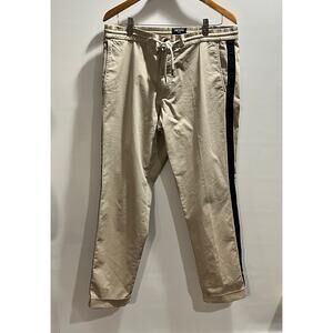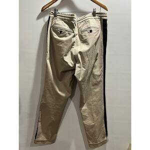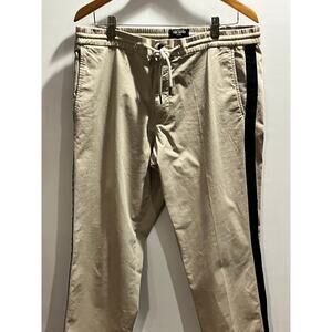 Todd Snyder NY Designer Drawstring Chino Trouser Pants Stone Beige Stripe Lg