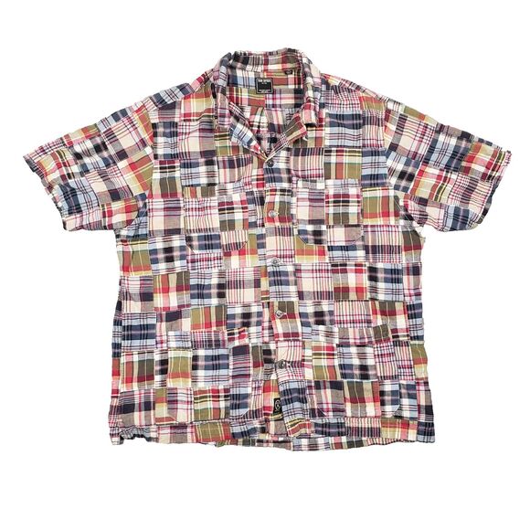 Todd Snyder Patchwork Madras Guayabera Shirt Mens XL Multi Plaid Retro Cuban