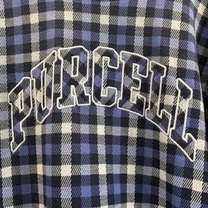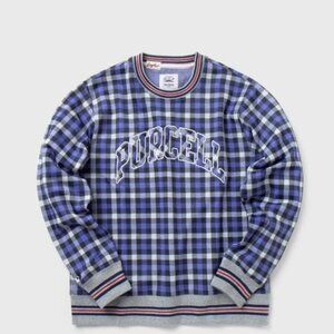 This Jack Purcell crewneck is a must for elevated streetwear fans. Blue plaid with a structured fit, striped ribbed trim, and embroidered chest logo. Iconic blend of prep and skatewear aesthetics — think varsity meets runway.