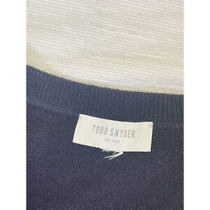 Todd Snyder Arm Stripe 100% Cashmere Crew Neck SWEATER Navy Blue Mens Size XL