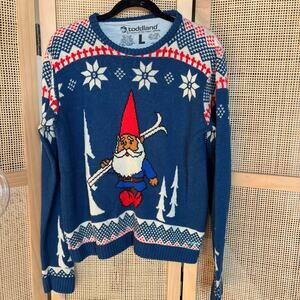 Toddland blue christmas sweater wool Gnome pullover ski kitschy cabin