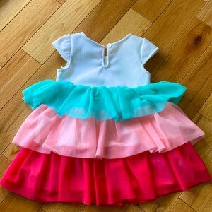 Sweet Heart Rose 2T little girls dress. We bought this from the store inside Cracker Barrel. It is precious and excellent condition! White shiny material at the top and layered colors of tulle at the bottom - aqua, light pink, bright pink
