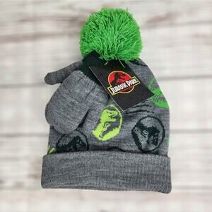 Toddler 2T-5T Boys/Girls Jurassic Park Licensed Knit Beanie Hat & Glove Set 2pc