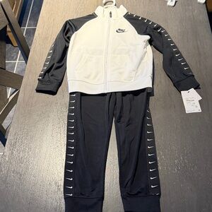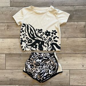 3. Nike Dri-FIT White/Navy Set: Moisture-wicking tee + navy logo shorts (Size 18-24M).