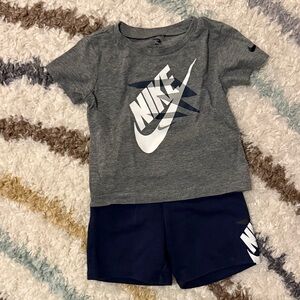 1. Nike Classic Grey Set: Heather grey logo tee + matching shorts (Size 18M).