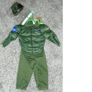 Toddler Aviator Pilot Halloween Costume 2T Muscle Green Jumpsuit & Mask Boys