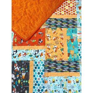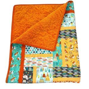 Toddler Baby Fox Forest Quilt Blanket Fleece Handmade Orange Teal Green 40x50