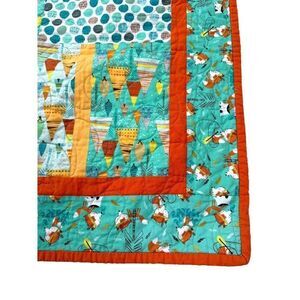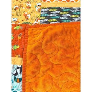 Toddler Baby Fox Forest Quilt Blanket Fleece Handmade Orange Teal Green 40x50 in great pre-owned condition.