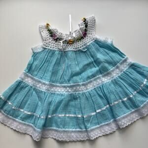 Toddler Baby Girl Mexican Dress Size 3-6M Handmade Crochet Tiered Peasant Lace